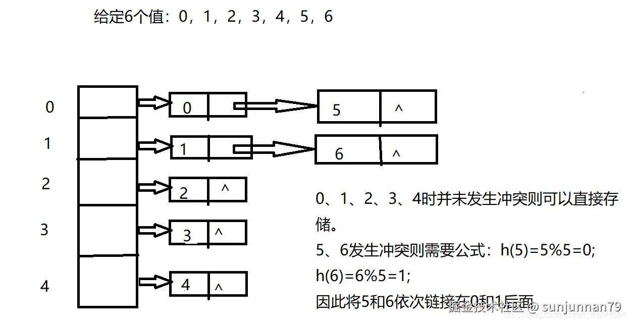 当两个不同的数经过哈希函数计算后得到了同一个结果,即他们会被映射到哈希表的同一个位置时,即称为发生了哈希冲突。