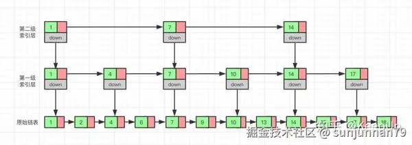 跳表全称为跳跃列表,它允许快速查询,插入和删除一个有序连续元素的数据链表。简单理解就是跳表是基于链表实现的有序列表,跳表通过维护一个多层级的链表实现了快速查询效果