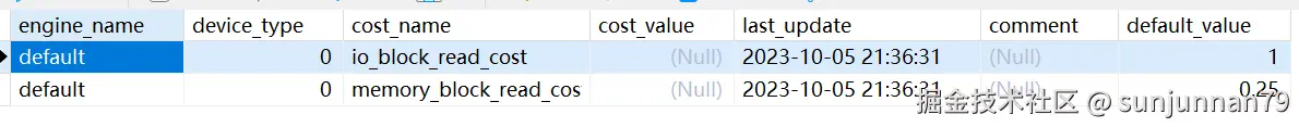 - memory_block_read_cost:从内存读取一个页的成本,默认值为0.25。