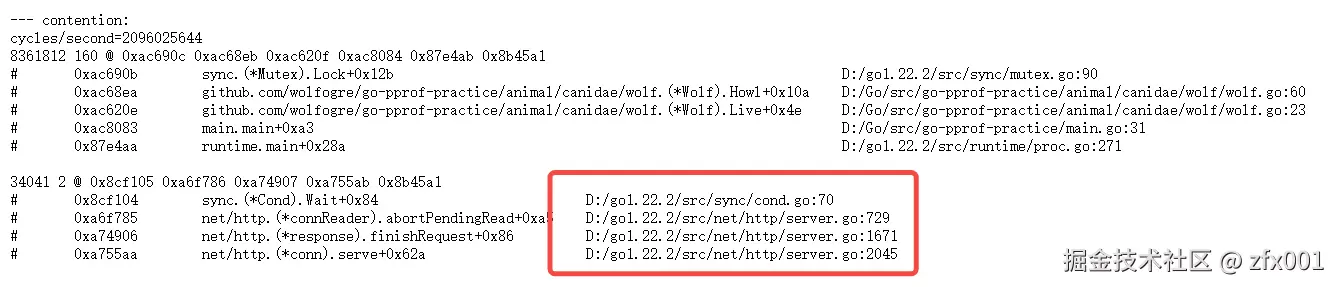 同样,通过上面的方法定位锁的竞争情况,本代码中主要是等待锁释放的时间较长。