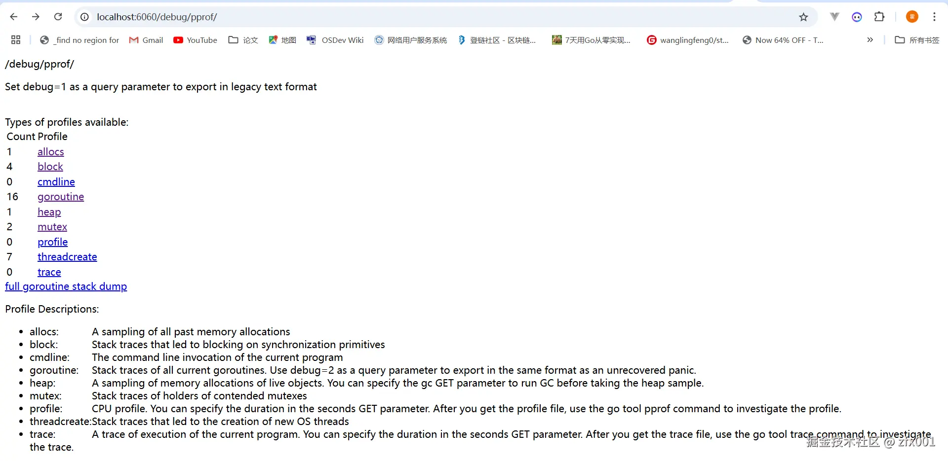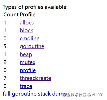 常用的方式是通过http请求去获取pprof采集的数据,做法为在程序中启动一个http服务并且引入net/http/pprof包,之后便可通过浏览器进行访问。