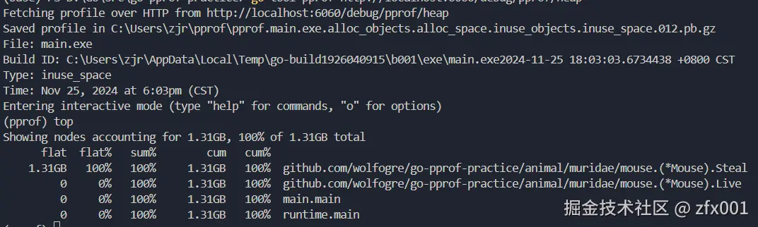 执行以下命令,会对程序进行30的分析(此时间可以自己设置seconds参数),之后便会进入命令行交互模式。