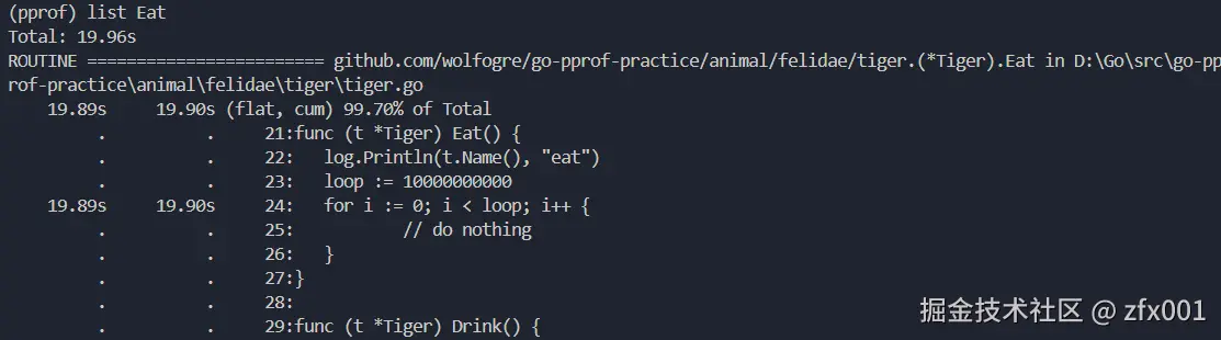 通过top命令可以看出,资源消耗最大的是Eat函数,之后通过list命令查看对应的代码,可以看到是一个超大for循环空转导致的,注释掉代码后,便可以解决。