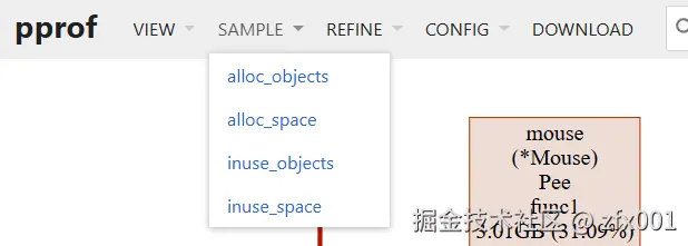还是和CPU排查的流程一样,使用top、list、web来排查解决问题,但此时可以看到,采样的类型为inuse_space,那是否还有其他采样类型呢?
