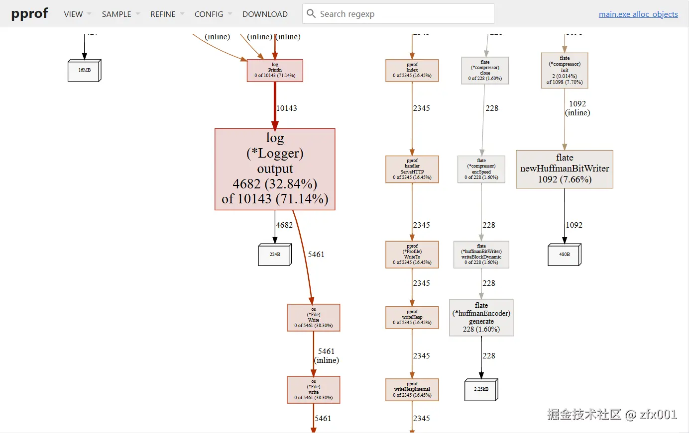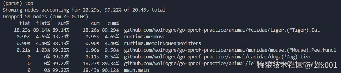 思考两个问题,什么情况下flat==cum?和flat==0?,一是没有调用其他的函数情况下,二是只有调用其他函数的情况下。