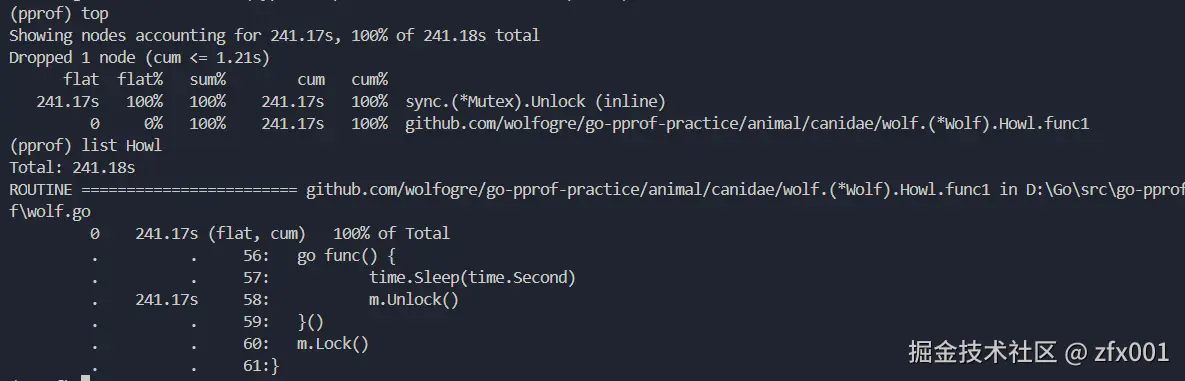 同样,通过上面的方法定位阻塞的问题,本代码中主要是读取一个channel,需要耗时一秒。