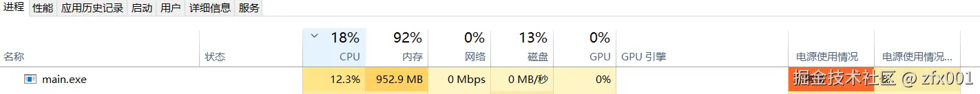 启动后可以看到CPU占比以及内存占比都比较高。