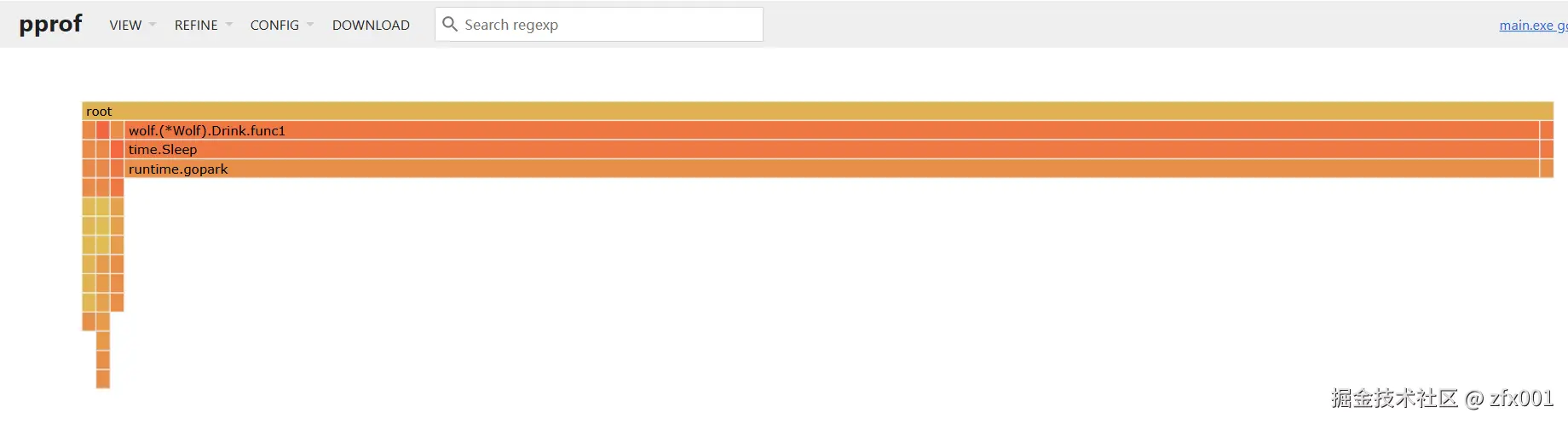 通过火焰图可以看到Drink函数调用时间很长,由此可定位并解决。