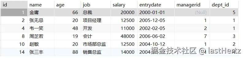 (1, '金庸', 66, '总裁',20000, '2000-01-01', null,5),