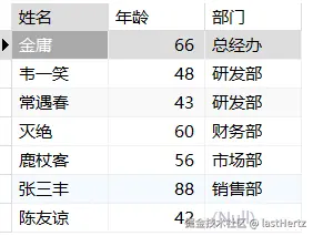 SELECT emp.name as 姓名, age as 年龄, dept.name as 部门