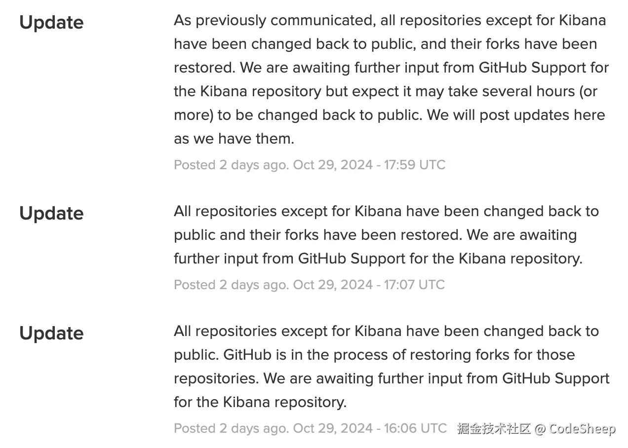 在发现问题后,Elastic 团队迅速响应,开始紧急恢复这些受影响的仓库状态。