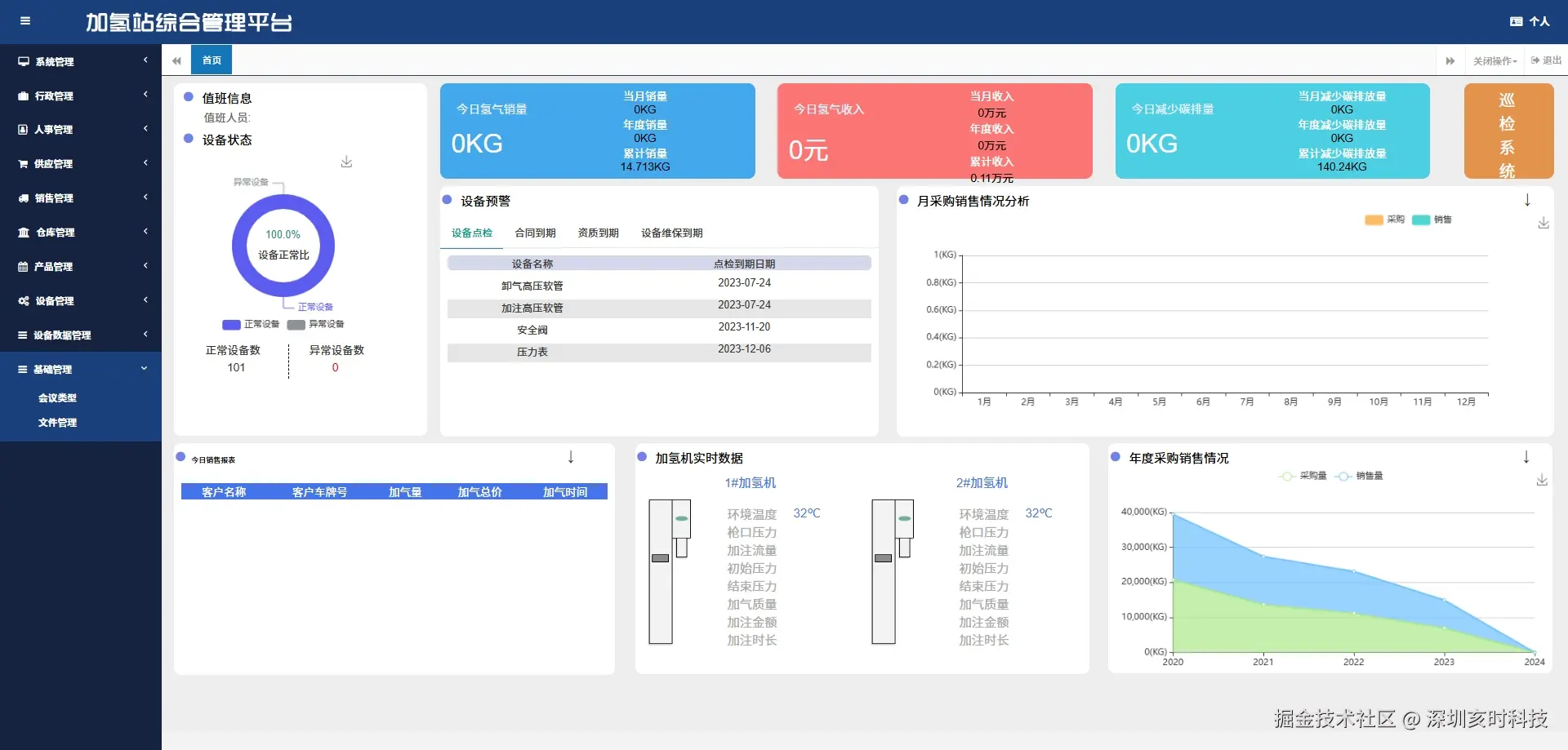 加氢站管理系统是一个综合性平台,旨在提高加氢站的运营效率和管理水平。系统通过系统管理、行政管理、人事管理、供应管理、销售管理、仓库管理、产品管理、设备管理和设备数据管理等模块,实现对加氢站各个环节的全面监控和管理。