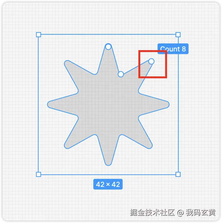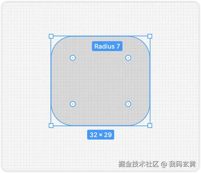 圆角:选中时鼠标移入会出现修改圆角的小圆点。