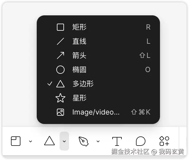 默认提供有:矩形、直线、箭头、椭圆、多边形、星形、Image/video,这七种形式,它们的使用形式都大同小异。
