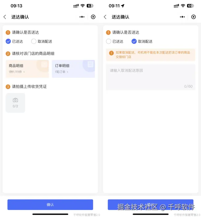 3.司机如未送达也可以针对未送达的门店进行取消配送以及取消配送原因的标记与记录。