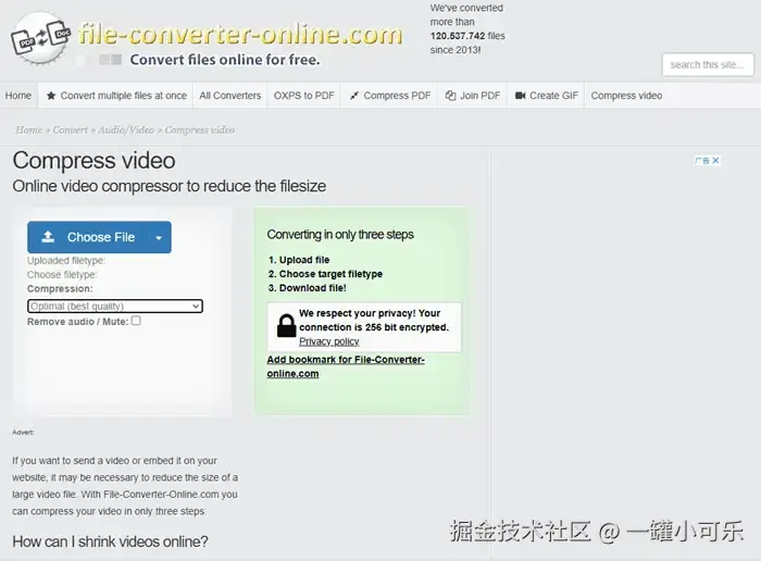 Youcompress也是在线视频压缩网站,但youcompress与Aconvert相比,其功能较为单一,不可选择视频压缩选项,并且仅支持压缩MP4、MOV、AVI格式的视频文件,视频压缩的限制条件较多。但其操作步骤较为简单,上传视频文件后,点击压缩选项,就可以自动压缩到适合的视频大小。