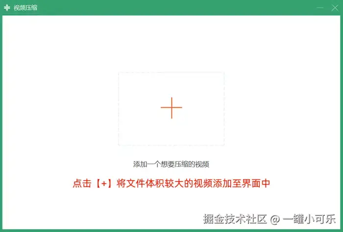步骤2:点击【+】,将文件体积较大的视频添加至该界面中。