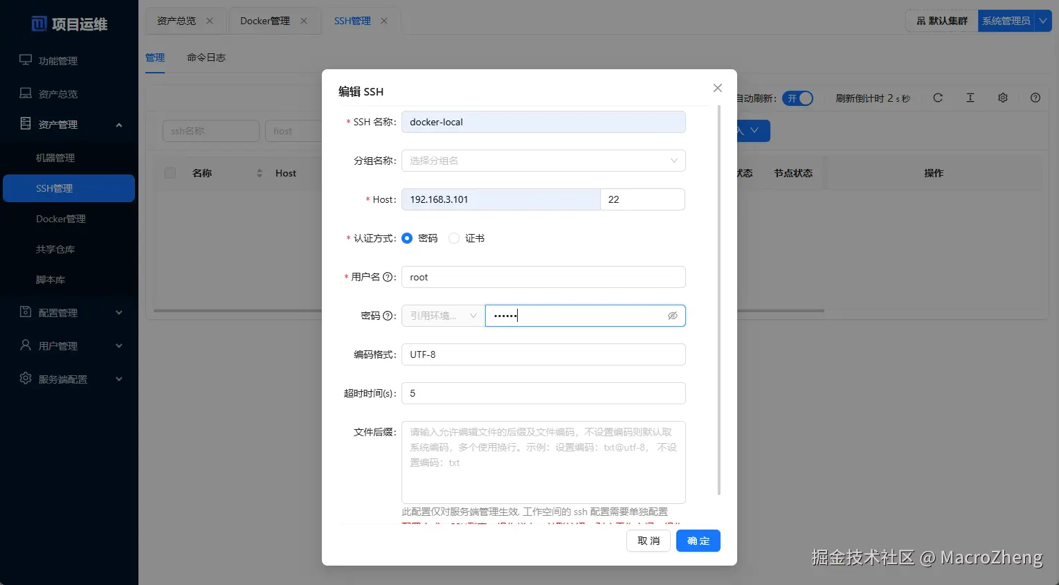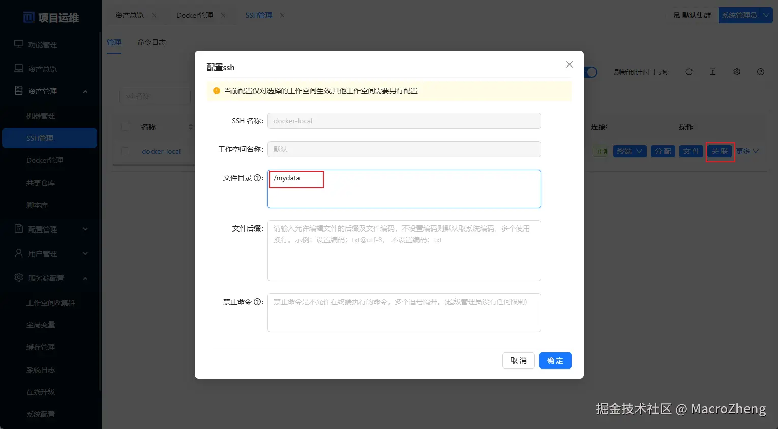 SSH管理中添加SSH配置,同理分配到默认工作空间后才可以使用;