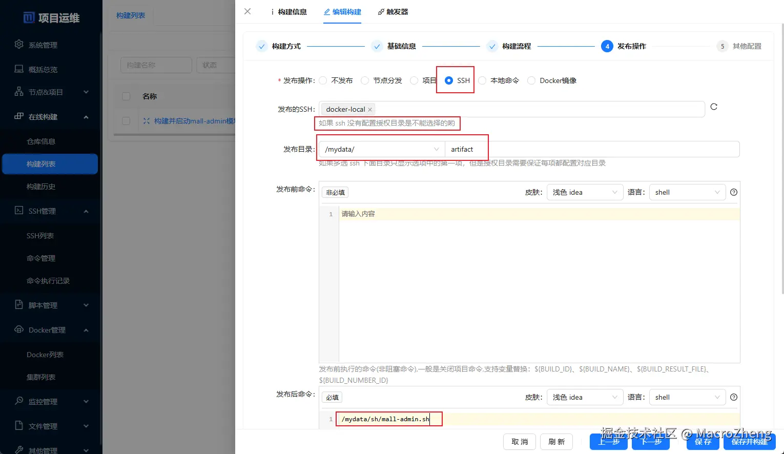 发布操作中的发布后命令即可,mall-search模块的构建配置也一样;
