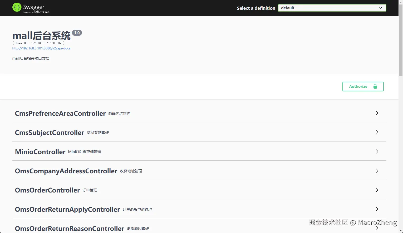 mall-admin服务的API文档了,访问地址:http://192.168.3.101:8080/swagger-ui/