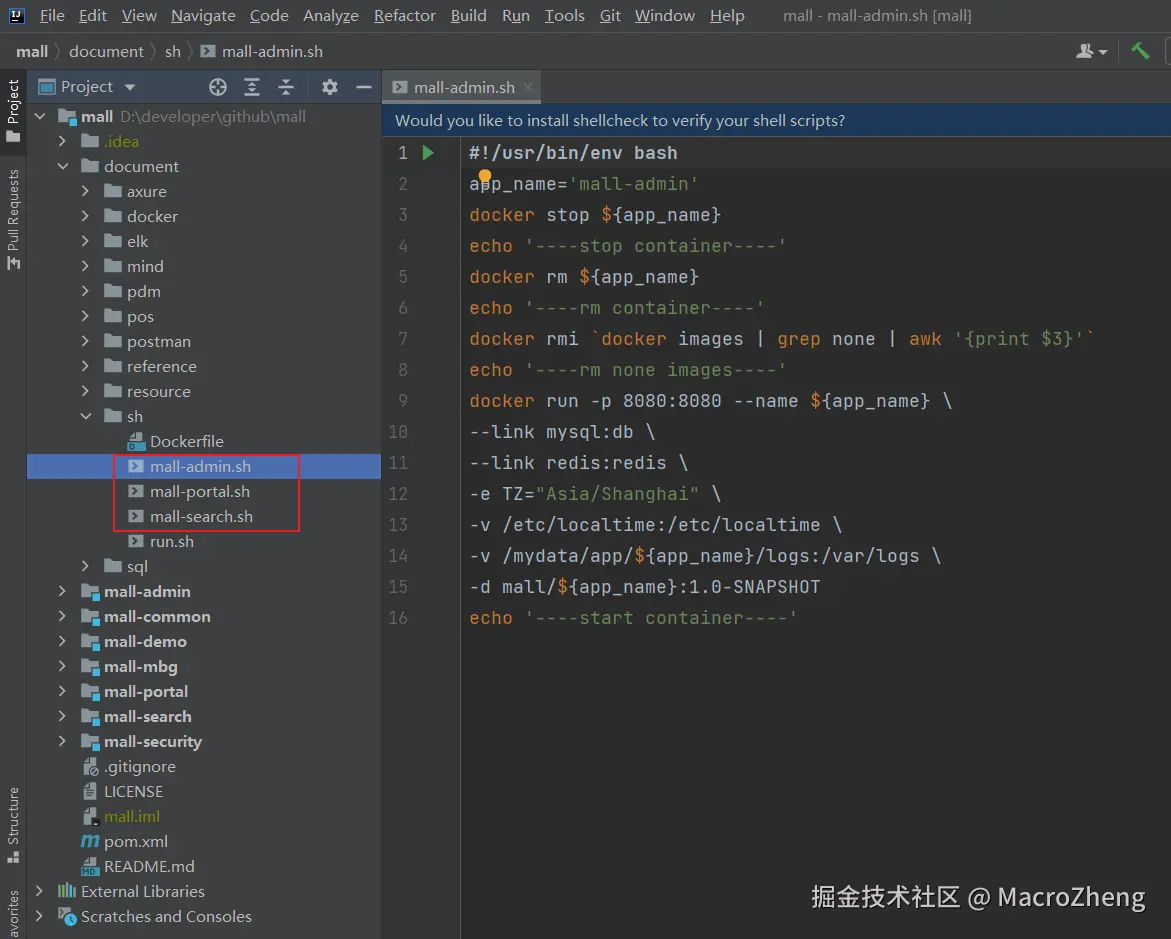 - mall项目的容器启动脚本在项目的