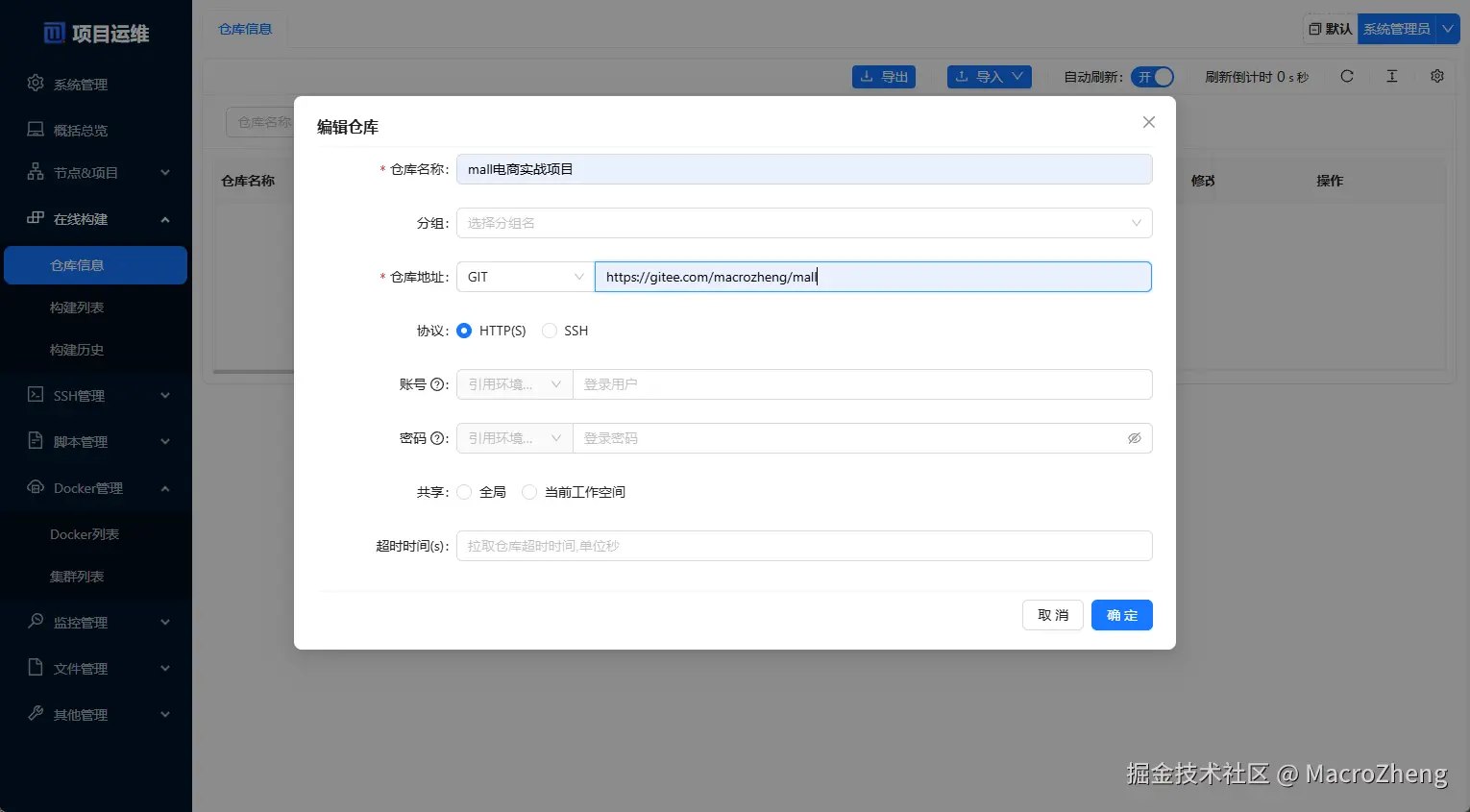 仓库信息中添加一个仓库,仓库地址:gitee.com/macrozheng/…