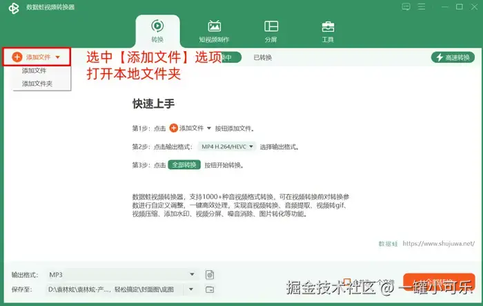 方法一:用数据 蛙视频转换器将mp4转为mp3