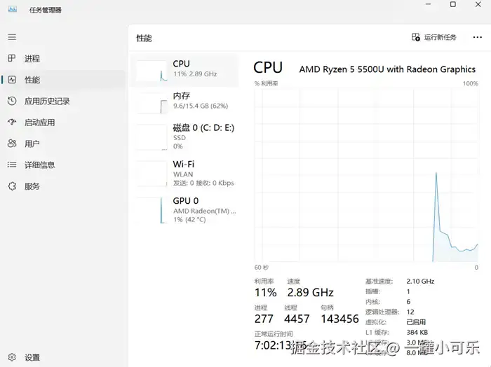 此外,从电脑的任务管理中也可解决如何查看自己的电脑配置的问题。具体的操作步骤是:右击电脑任务栏,选择【任务管理器】选项,进入该页面后即可查看电脑内存、CPU等配置参数。