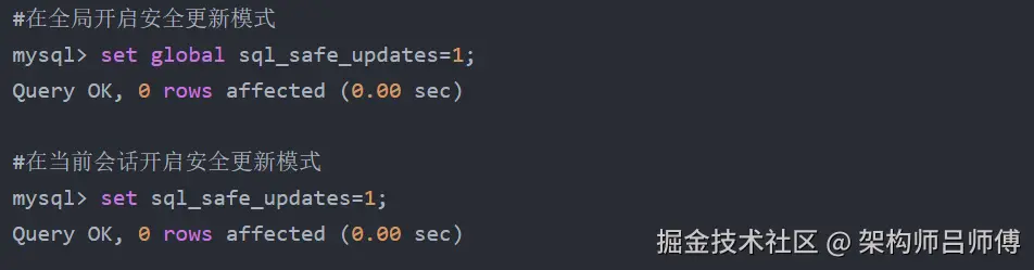 注意:虽然sql_safe_updates能够显著提升安全性,但它并不能完全替代其他形式的安全措施,例如权限管理、定期备份等。因此建议结合多种策略共同构建坚固的防御体系。