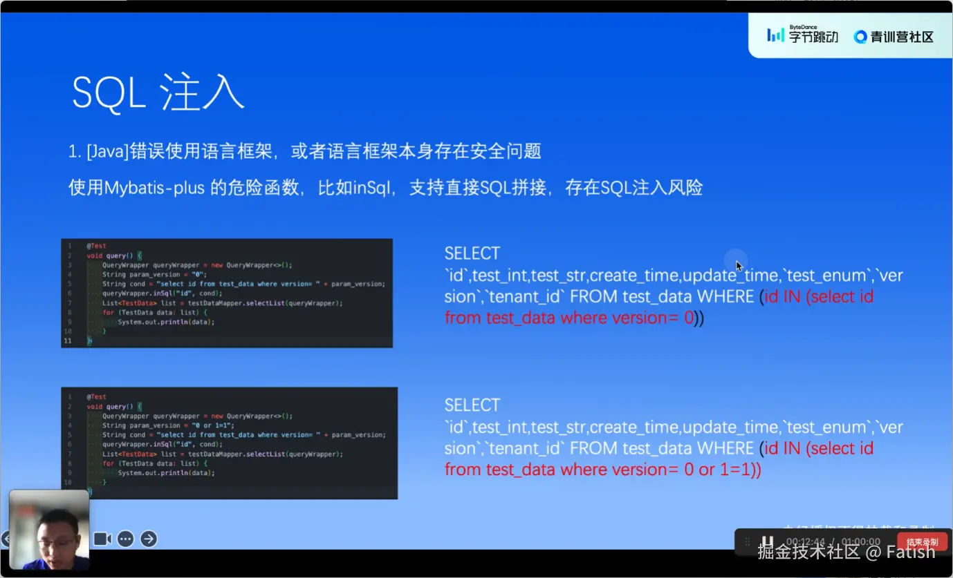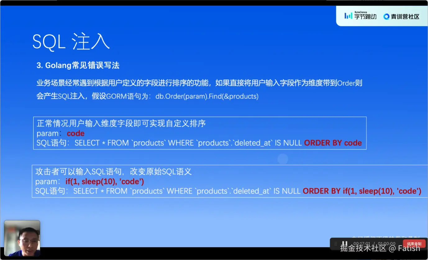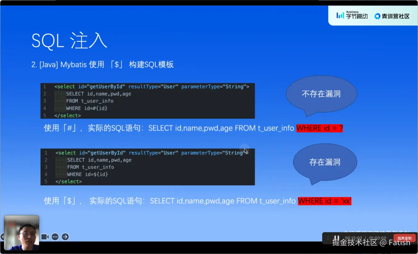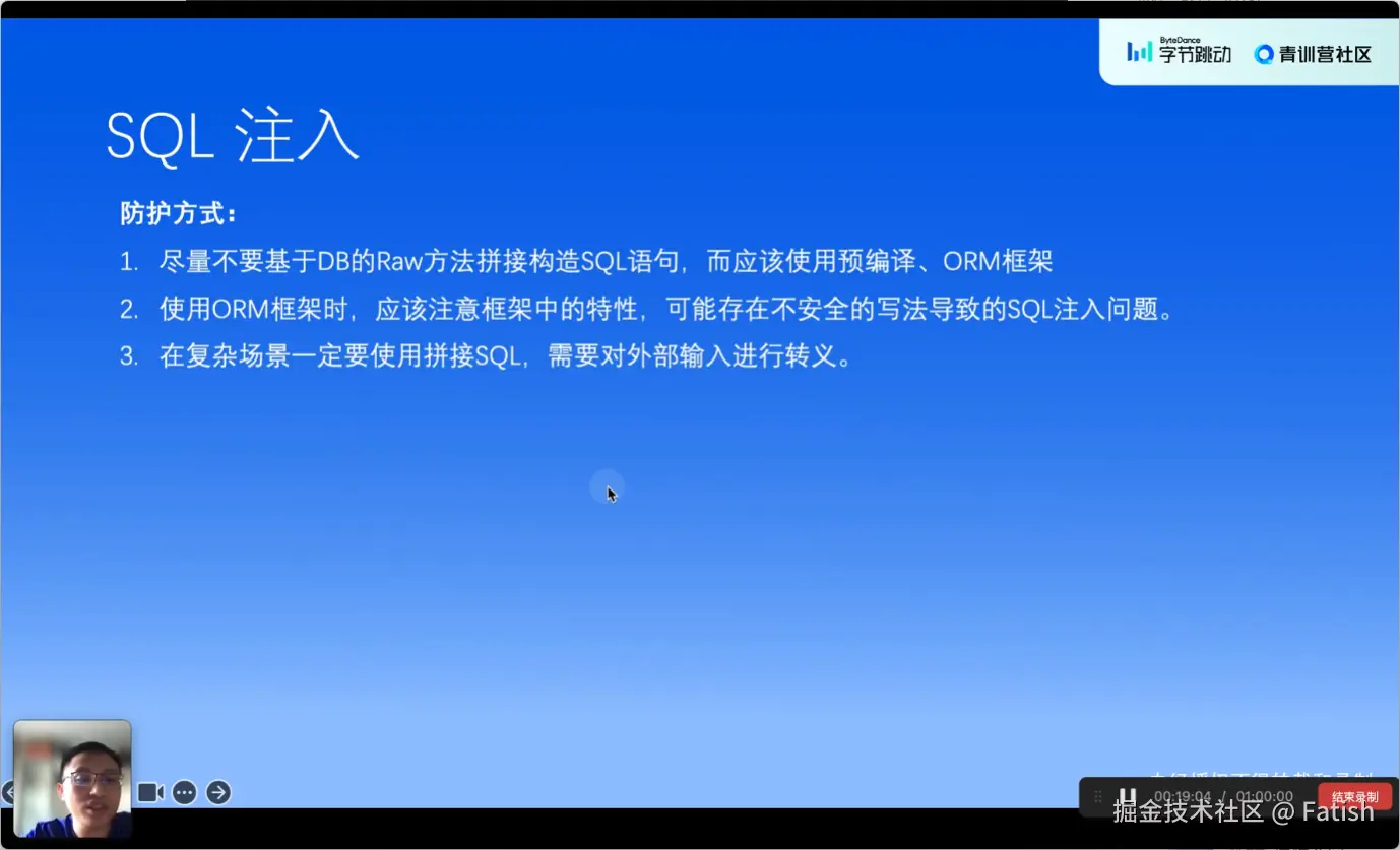 防范SQL注入漏洞主要有三个要点:1. 避免使用字符串拼接的方式来构造SQL语句;2. 不要盲目依赖ORM框架,确保在使用时对外部输入进行严格验证和转义;3. 在必须拼接SQL的情况下,务必对外部输入进行严格的转 义 处理,避免外部输入影响到整个SQL语句的正确执行。