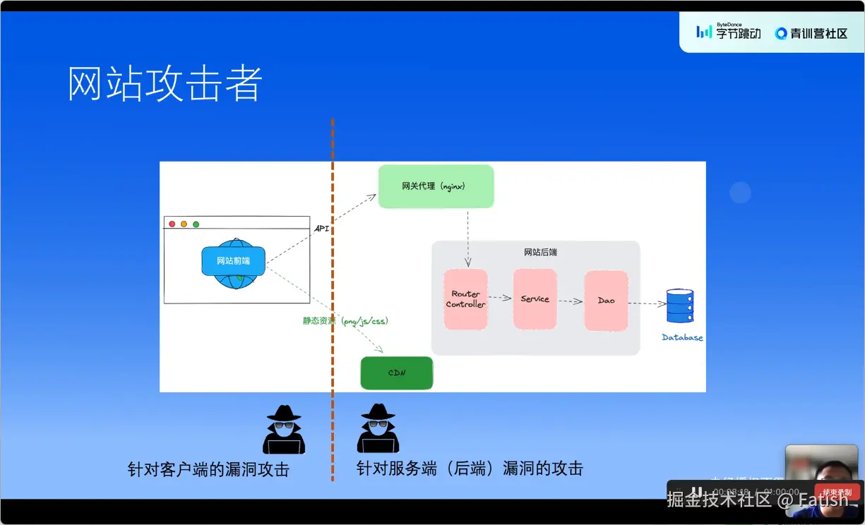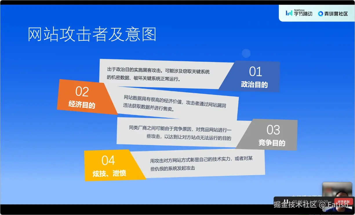 网站的基本构成主要包括前端页面展示和接口调用、后端提供数据接口及业务逻辑处理、中间组件如网关进行代理,以及静态资源存储CDN等元素。攻击者的意图主要包括出于政治目的实施攻击以控制或破坏系统;出于经济目的获取高价值数据并通过售卖获利;出于竞争目的削弱竞争对手;出于泄愤、复仇或其他个人原因发起攻击。