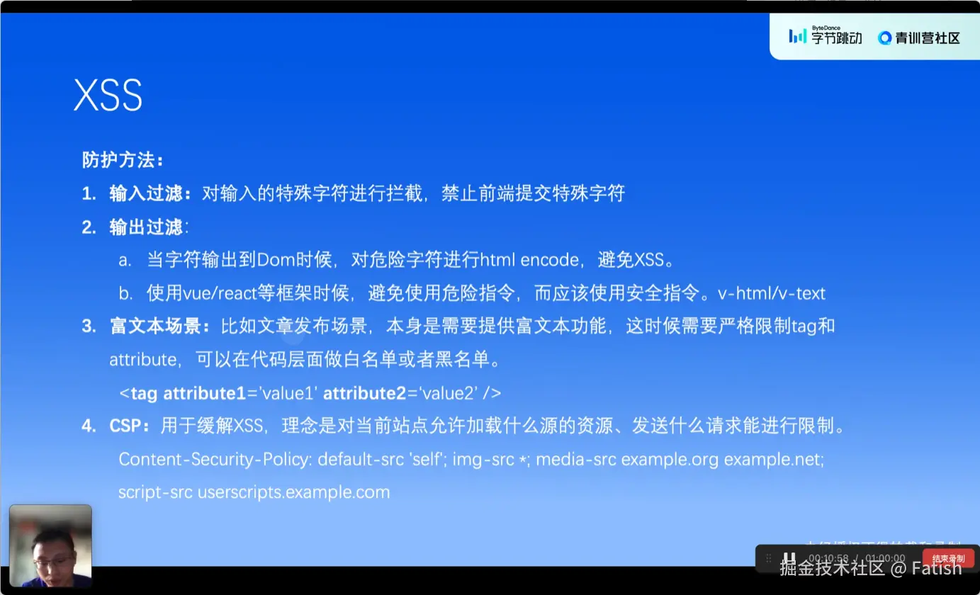 防护方案主要包括输入功率控制(禁止特殊字符输入)、数据过滤(对服务端返回数据进行编码或转译)以及输出功率控制。对于敏感函数和标签,需要进行严格过滤或替换为安全选项。另外,在某些场景下,采用白名单控制,仅允许特定标签和属性通过。