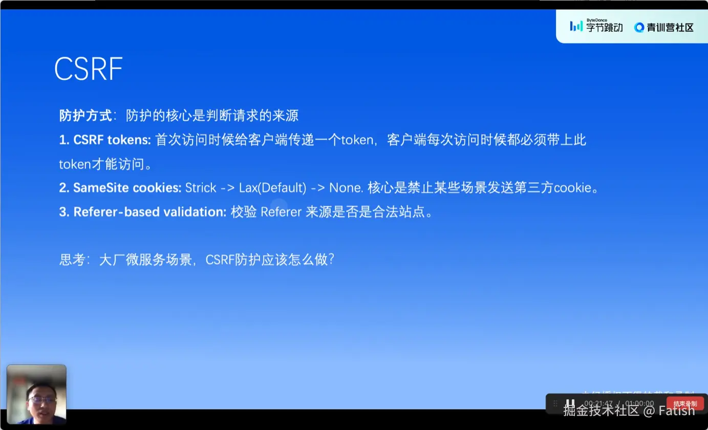 在微服务场景中,研发人员应考虑多种因素,如token的生成与校验、CSRF漏洞防护等,并结合refer头的校验、限制外部平台访问以及合理配置CORS(跨域资源共享)策略等手段,综合设计一套防护方案。