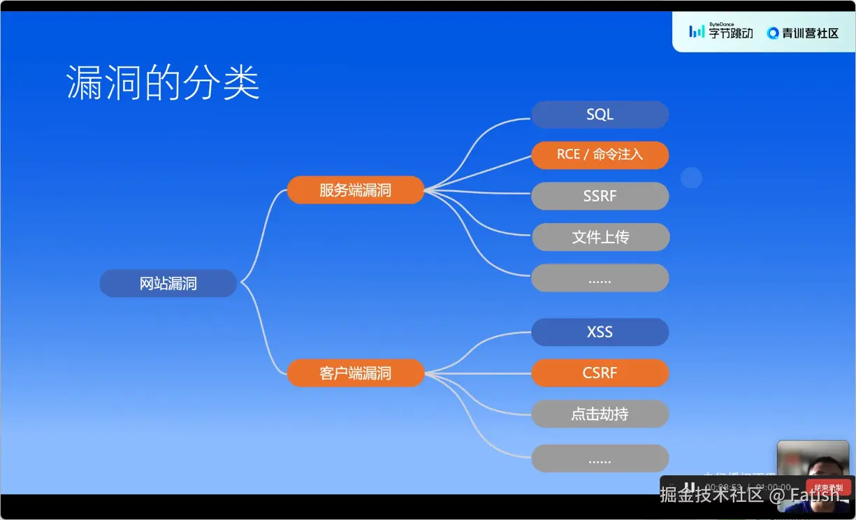 本章将详细讲解网站安全中的常见漏洞,包括服务端漏洞和客户端漏洞,并指导大家如何在开发和安全过程中发现并解决这些漏洞。课程共分为四个部分,首先介绍什么是漏洞,然后分别深入探讨服务端和客户端漏洞的具体场景。