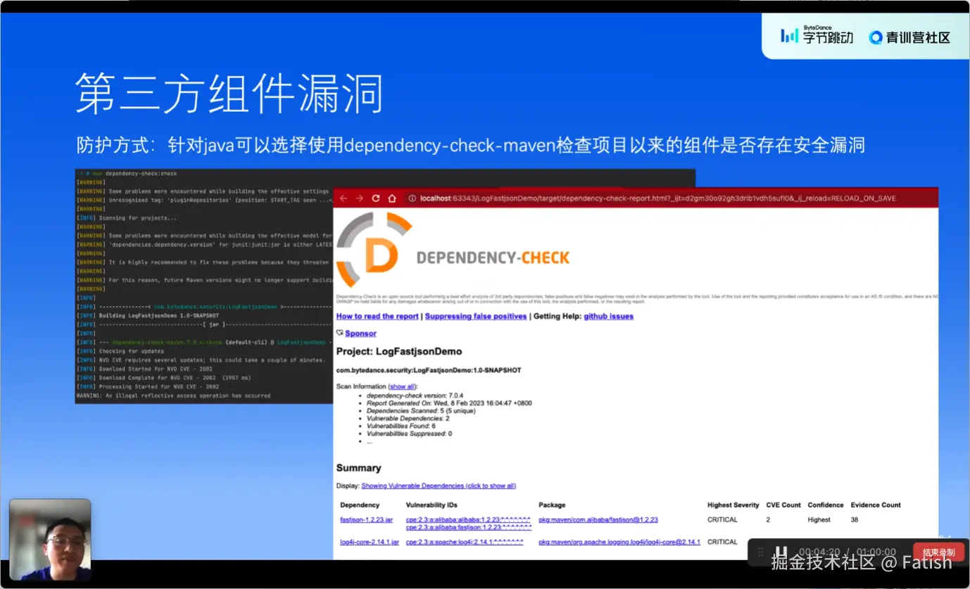 对于开发者而言,应当在系统建设阶段提前设计并安全编码,确保代码和产品的安全性。对于蓝军(网络安全测试人员),需要深入理解漏洞以反向验证企业内部安全现状,找到并加固系统中的薄弱点。同时,可以通过使用第三方工具检测和防范已知的第三方组件漏洞,例如在Java项目中使用dependency check插件来检查和报告依赖组件的安全问题及其修复优先级。