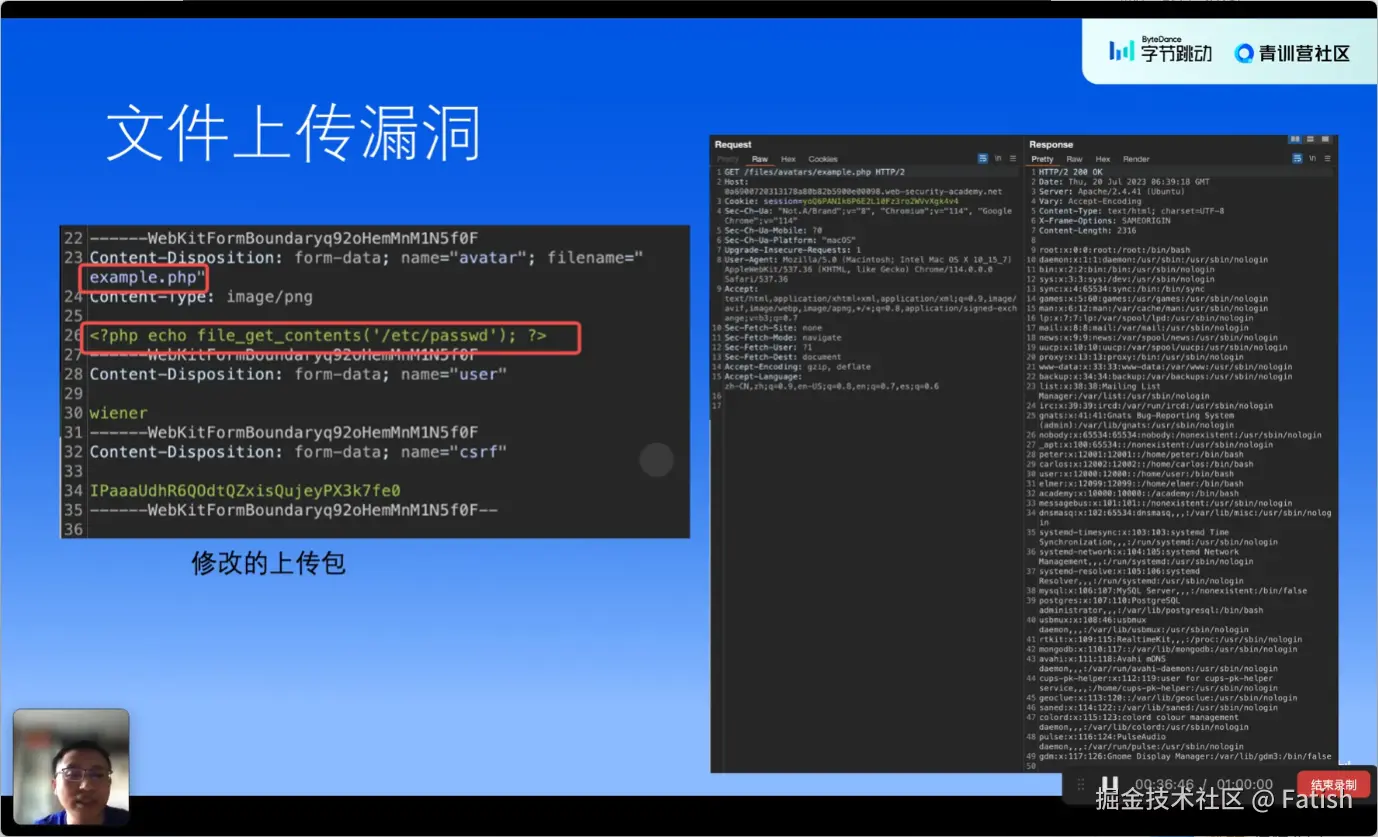 文件上传功能中存在两类主要风险。第一类风险是用户可能上传服务端脚本,例如PHP等解释型语言的文件,如果服务器没有对文件后缀和内容进行限制,攻击者可以上传包含恶意代码的文件,进而执行从磁盘读取敏感信息的操作。第二类风险是文件类型限制不严格时,可能会导致CDN(内容分发网络)加速链接被滥用,攻击者将上传的文件作为静态资源存储在CDN中,通过分享未经签名或过期的直接访问链接,让外部用户免费快速加载大文件或视频内容,从而造成带宽占用或资源泄露。