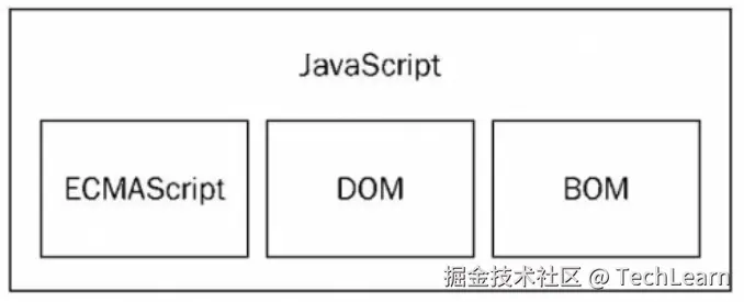通俗理解就是:ECMAScript 是 JS 的语法;DOM 和 BOM 是用来处理网页和获取浏览器信息的API。