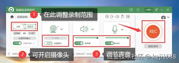 步骤2:调整录制范围和录制声音,点击录制按钮开始录制。