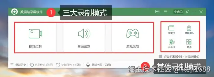 步骤1:在您电脑上启动软件,在软件的主界面可自由选择录制模式。