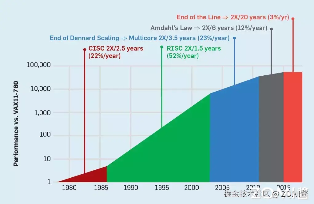 图灵奖获得者 David Patterson 在 2019 年 5 月发表了一个名为“计算机架构新的黄金年代”的演讲,他通过回顾自 20 世纪 60 年代以来的计算机架构的发展,来介绍当前的难题与未来的机遇。他预测未来十年计算机架构领域将会迎来下一个黄金时代,就像 20 世纪 80 年代一样。