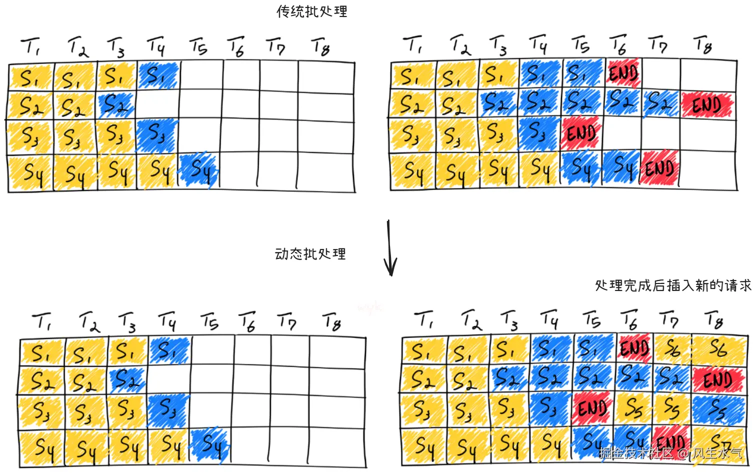 批处理和连续批处理,图片参考来源:参考文档2。有加工