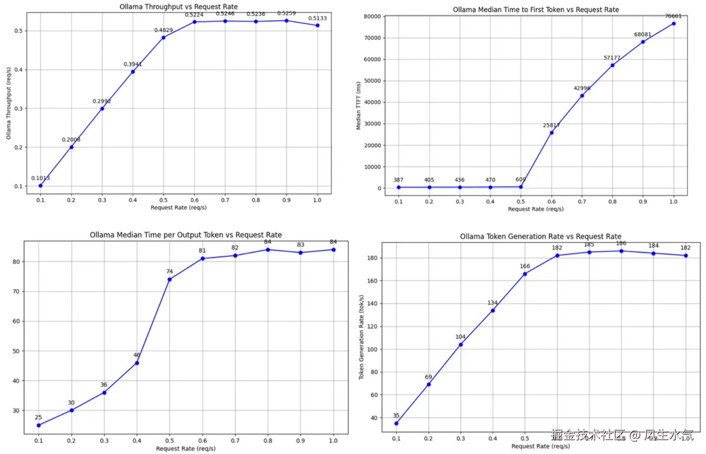 高吞吐要求能够同一时间处理更多的请求;低延迟要求处理速度尽可能的快,避免给用户带来体验上问题,扩展性则是要求能够随流量自动缩放资源,减少花费。一些实验结果表明:ollama在这些挑战上存在一定的限制。