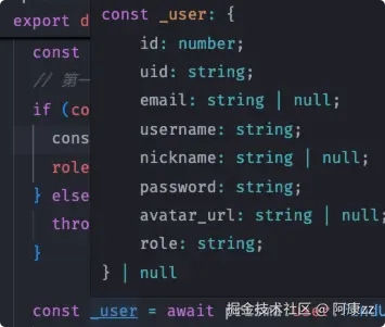 这个 User,同样也会在使用 prisma 进行查询时使用,比如: