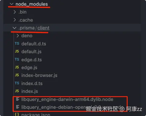 native 就是本机的环境,第二个值我配的是服务器上的环境,配好这个参数后,prisma/client 里会生成对应的二进制文件,会被打包上去。(因为我这个项目是本地打包)如果你是线上打包的话,那 native 其实就是你得线上服务器环境了。