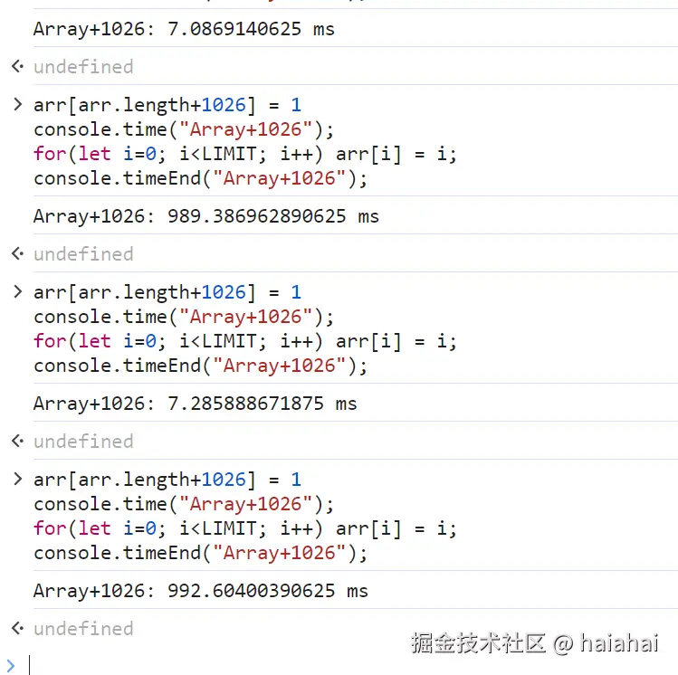 为了解决这个问题,V8 引擎会在某些情况下将数组转换为慢速模式(Dictionary Elements),在这种模式下,数组元素使用哈希表来存储,这样可以更高效地处理稀疏数组,因为只需要为实际存在的元素分配空间。