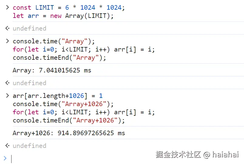 length属性为过大的值,这会导致数组变成慢数组。可以通过push等方法逐步增加元素。javascript 复制代码 let arr = []; arr.push('a'); // Avoid setting arr.length directly