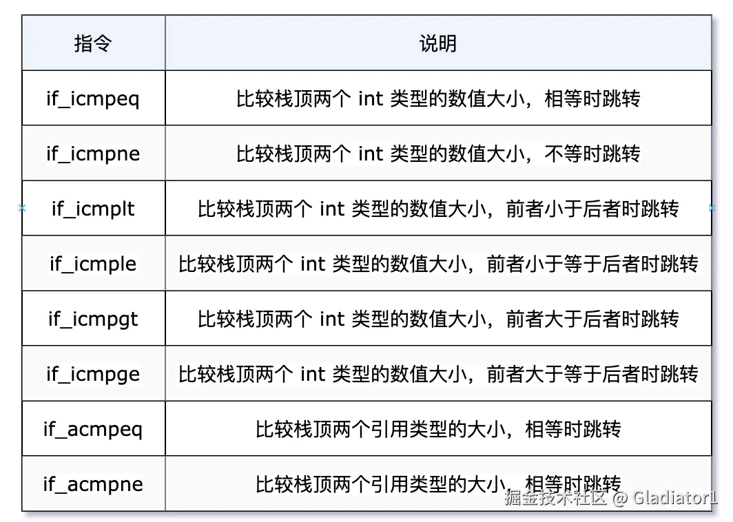 由于 Java 虚拟机是基于栈而不是寄存器的结构,所以大多数字节码指令都只有一个操作码。比如 aload_0 就只有操作码没有操作数,而 invokespecial #1 则由操作码和操作数组成。