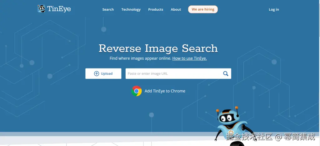 TinEye是一家图像搜索和识别公司,专注于计算机视觉、模式识别、神经网络和机器学习技术。公司致力于使图像可搜索,提供包括高级图像识别、标签匹配、图像跟踪、图像验证、移动图像识别和颜色搜索等产品和服务。