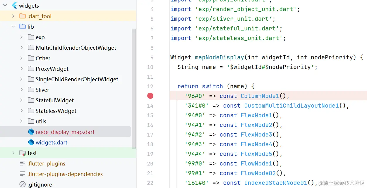 此时在 FlutterUnitTool 的数据分析中,可以创建一个 Node 节点的数据展示。映射关系中的键与值就准备就绪,最后只需要一点点小魔法,遍历当前的节点数据,生成 mapNodeDisplay 对应的源代码即可: