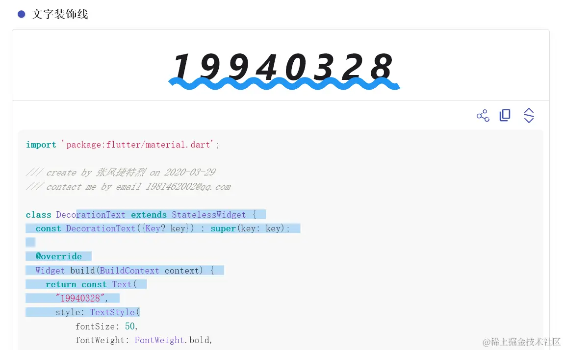 新版的 FlutterUnit 对案例展示的布局效果进行了优化,如下是一个案例节点,它包括 标题、案例组件、操作工具、 介绍信息 四个部分。